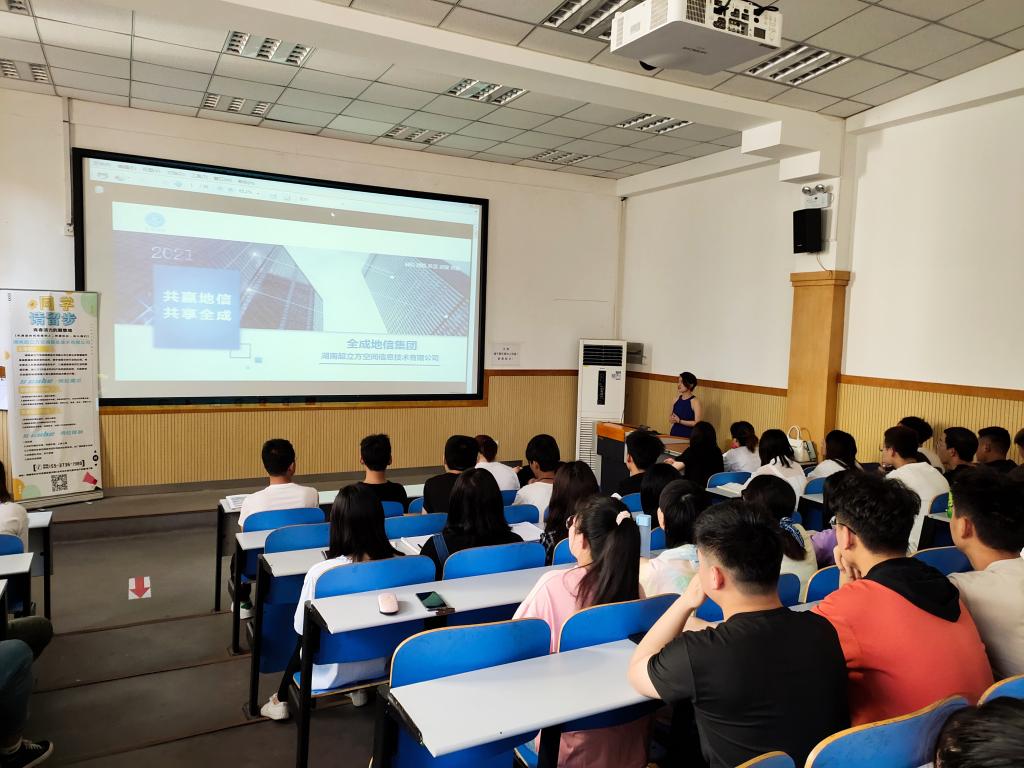 5月24日,土木工程系举办全成地信集团湖南超立方空间信息技术有限公司招聘宣讲会,由公司人力资源总监吴雪君担任主讲人,系2019级测绘相关专业学生参加本次宣讲会。
