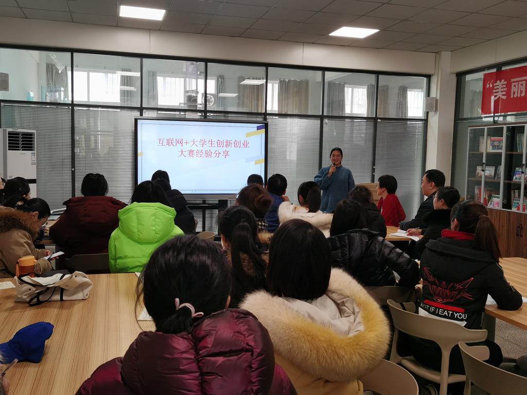 然后,李曼老师就“互联网+大学生创新创业大赛专题”展开交流。李老师从比赛介绍、选题原则、队员遴选、项目计划书编写、答辩环节、改进完善措施六个方面展开交流。李老师指出,创新创业是一种乐趣,是一种学习的过程,是一个锻炼能力,获取经验的过程,并将自己带领学生参赛的案例与大家分享,深度剖析问题,使在场的老师对比赛情况和所需条件有了更加系统的了解。
