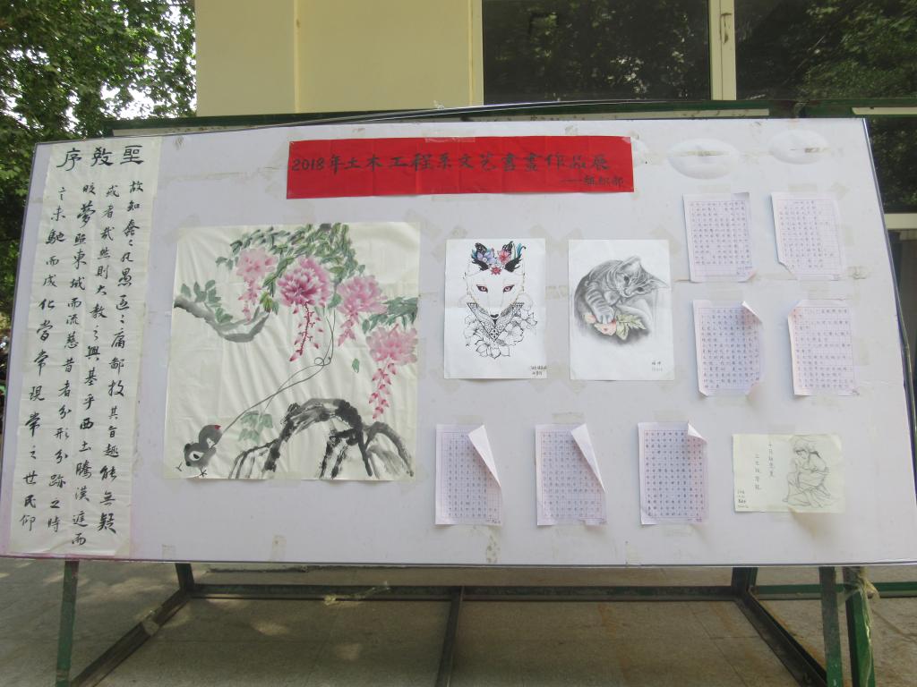 为丰富学生们的业余生活,土木工程系于5月17日举办书画大赛。活动共征集了80余幅书画作品,书法类作品包括硬笔书法和软笔书法,同学们的作品各展千秋,圆笔突出的隶书,有整齐一律的楷书绘画类作品有油彩、素描、彩铅画等。经筛选评审,最终评出一等奖2名二等奖2名三等奖4名。