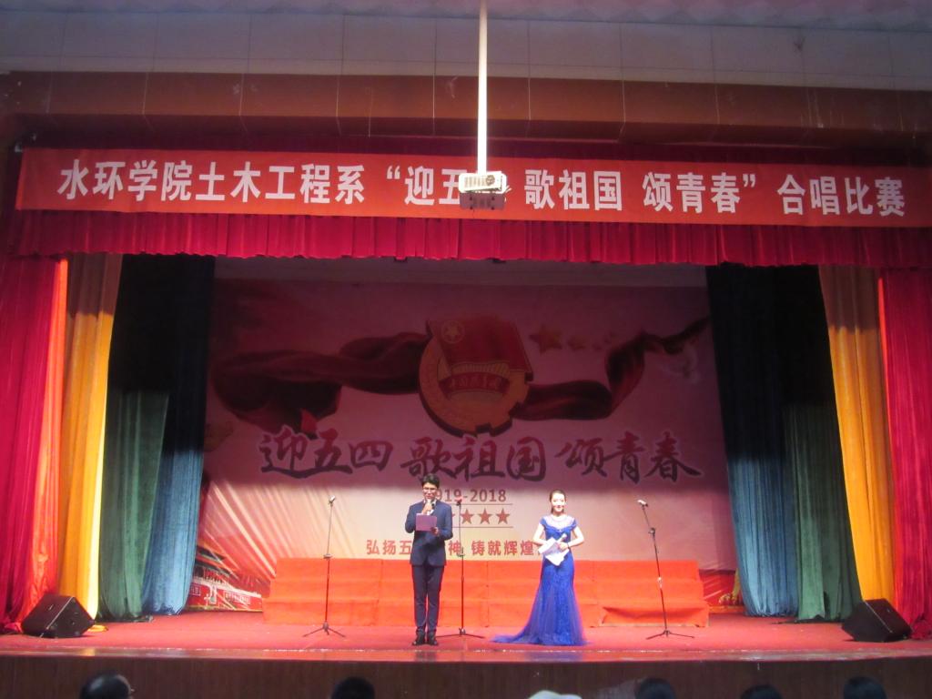 2018419日晚上七点,河南水利与环境职业学院土木工程系在大礼堂举办以迎五四,歌祖国,颂青春为主题的合唱比赛。系全体学管老师、辅导员出席此次活动。