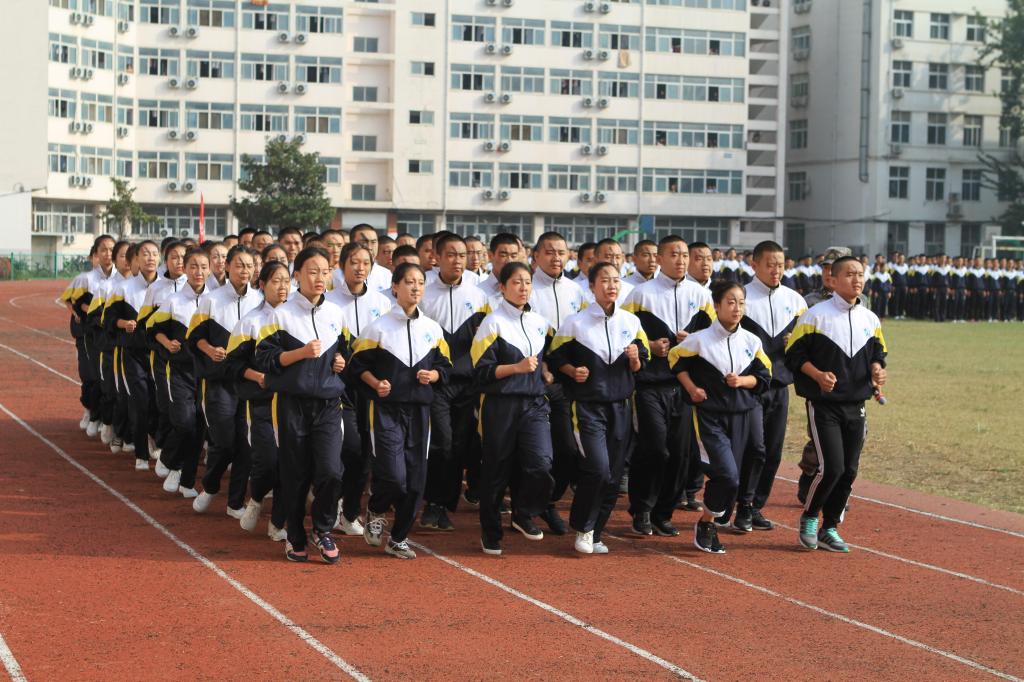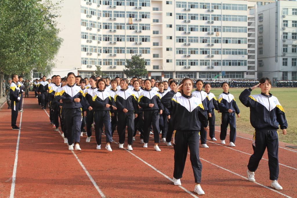 王立正在承训部队领导的陪同下检阅了参训学生及2017级新生军训方队。“同学们好!”“老师好!”“同学们辛苦了!”“为校争光!”检阅式上同学们嘹亮的口号响彻云霄。在雄壮激昂的分列式进行曲伴奏下,由参训新生组成的46个方队精神抖擞,迈着整齐有力的步伐,喊着嘹亮的口号,昂首阔步依次经过主席台,向学院领导、老师们汇报展示军训成果。分列式结束后,队列方队、数字变换方队、军体拳表演方队依次进行了汇报表演。汇报表演方队用嘹亮的口号,有力的步伐,整齐划一的动作,诠释参训新生良好的军人品质。