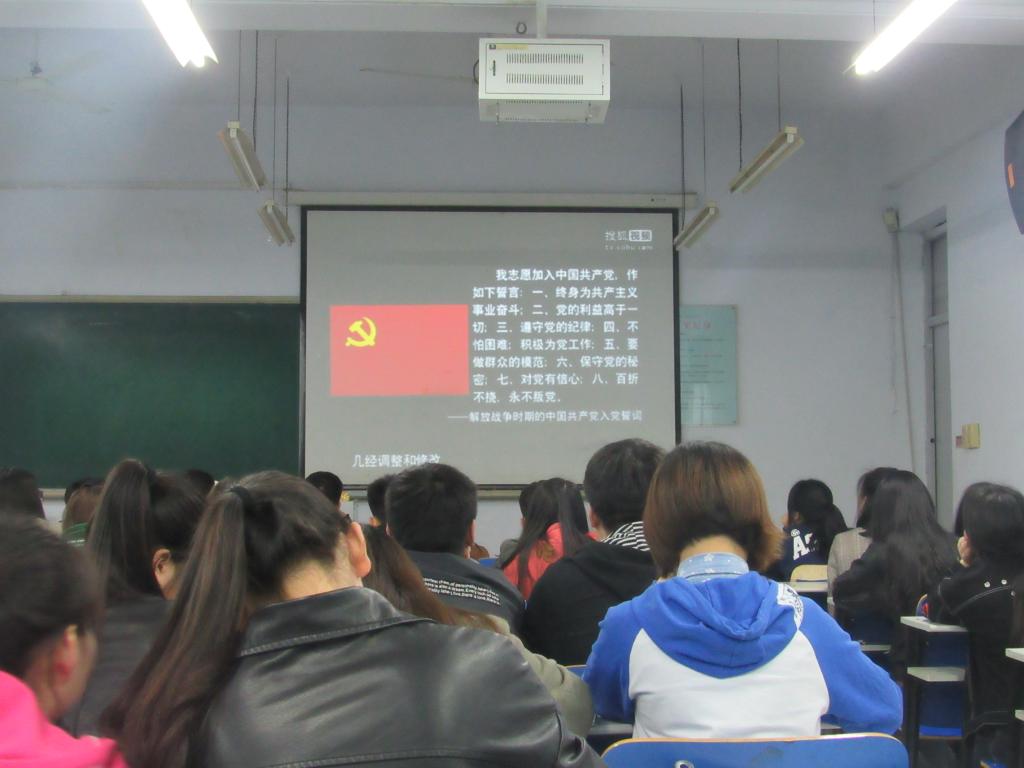2018年4月12日19:00,土木工程系在南教304教室对入党积极分子进行了以“中国共产党的信仰精神”为主题的党课培训。