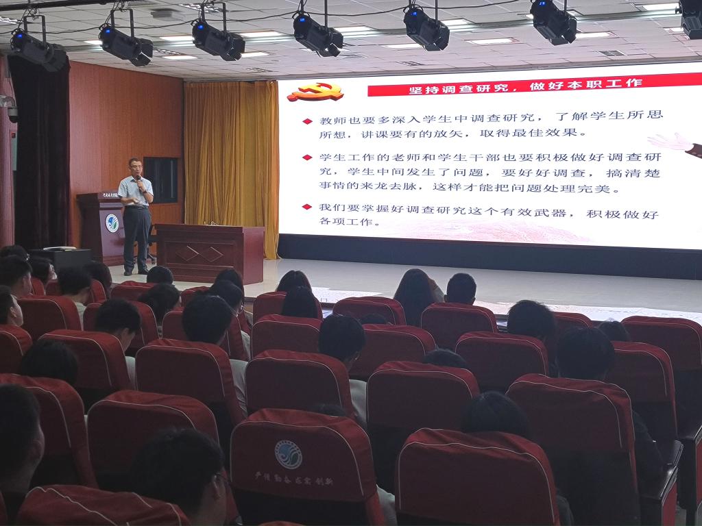 土木工程系系党总支书记文琳以《加强主题教育,提高调研能力》为题,为全体学管老师和学生入党积极分子讲授专题党课。