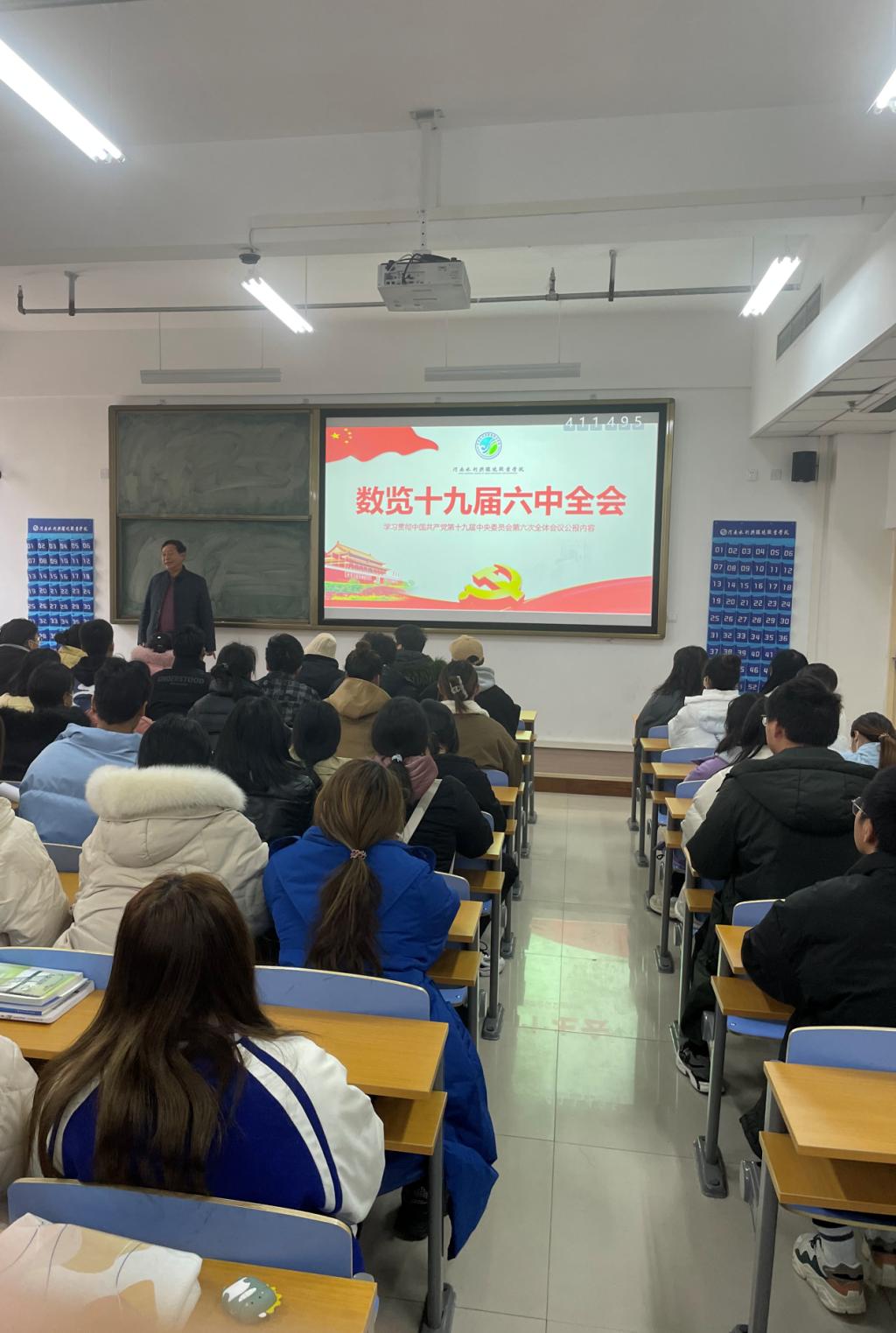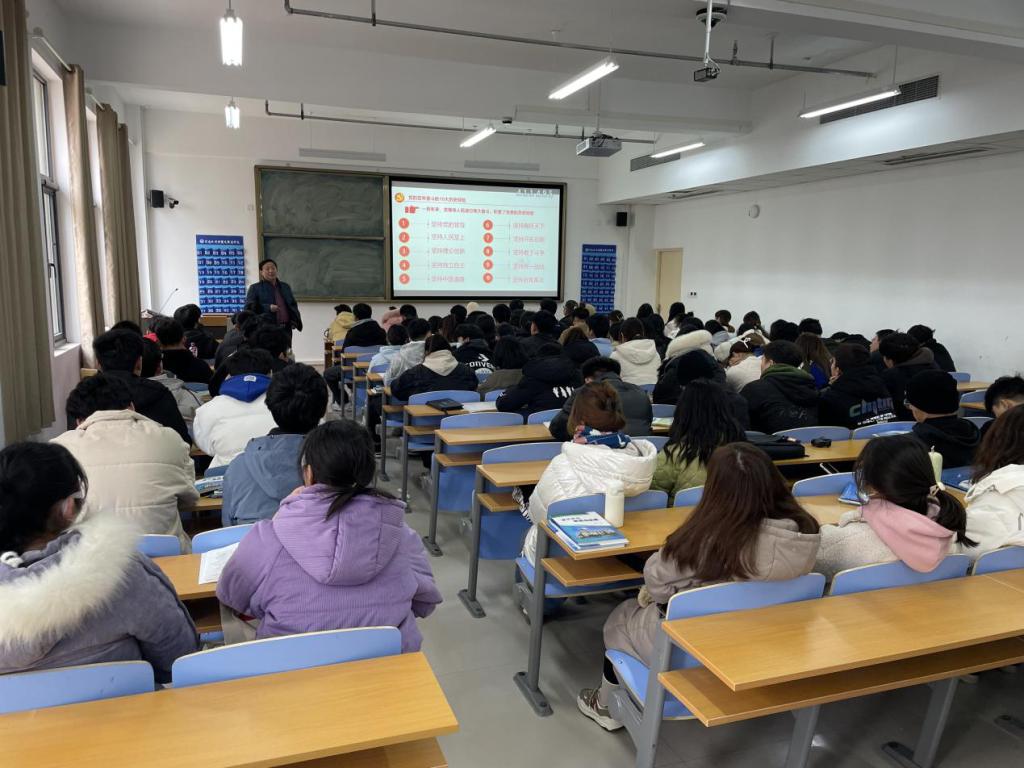 1225日,副校长蒋彦成在航空港校区博思楼224开展“学习党的十九届六中全会精神”主题党课培训,土木工程系党总支书记文琳、系全体辅导员教师及2021级装饰1、2班学生80余人参加。
