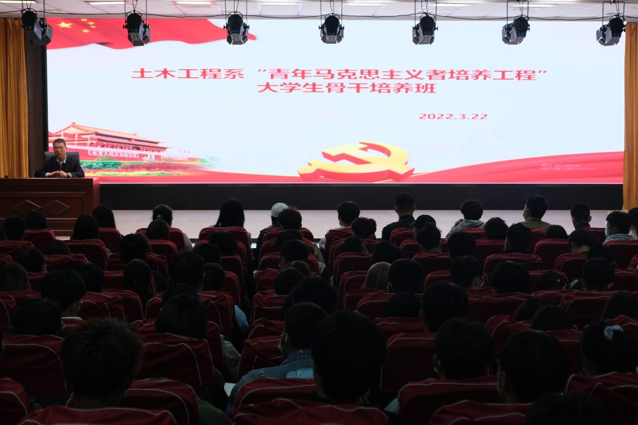 4月4日,土木工程系在德礼讲堂举行2022年“青年马克思主义者培养工程”结业典礼,典礼由系党总支书记文琳主持,系团总支书记、全体辅导员及200余名学员参加。