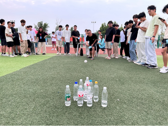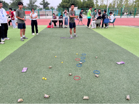 第二部分同学们移步到游戏区,参加“套圈夺粽”和“粽子保龄球”趣味游戏。在“套圈夺粽”中,同学们拿到一定数量的套圈去套中摆放好不同大小形状的粽子,“粽子保龄球”即用打保龄球的方法击打水瓶,两个游戏均为数量越多者积分越多。同学们都兴致勃勃,跃跃欲试。