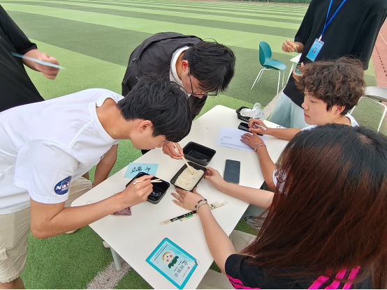 第三部分为“粽子接力”和“夹红豆”两个趣味活动,参与“粽子接力”的同学需要通过转盘抽取工具盲盒,并利用抽取的工具在规定时间内运送粽子,在限定时间内运送的粽子数量多者胜出。“夹红豆”需要同学们用筷子将红豆从盛有糯米、红豆的容器中夹出。活动现场充满欢声笑语,洋溢着节日的欢乐氛围。