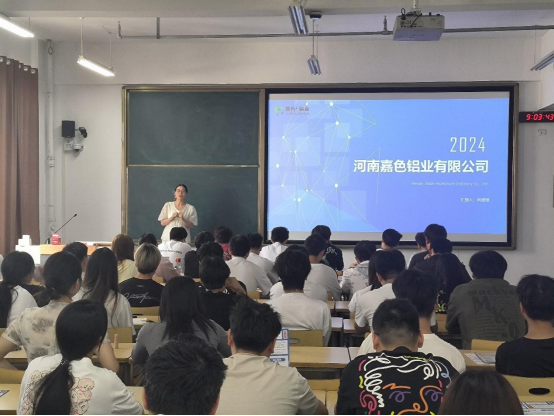 招聘会上,企业招聘负责人介绍了岗位需求、拟招人数、任职要求、销售优势和发展路径,进行了优秀案例分享和企业文化展示,展示了实业工厂河南嘉色铝业有限公司的代表产品,并与现场学生进行互动交流,答疑解惑。同学们踊跃投递简历。