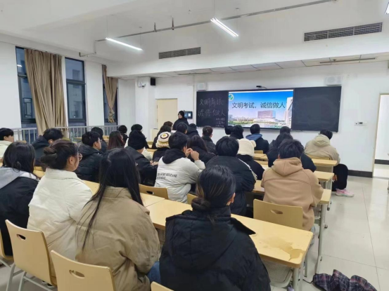 全系学生以班级为单位,由各班学习委员领读领学国家和我校考试纪律有关规定,进行诚信考试宣誓。全体同学郑重宣誓,要认真学习,诚信应考,调整心态,杜绝作弊,共同守护“勤学、善思、立德、强技”的优良学风。