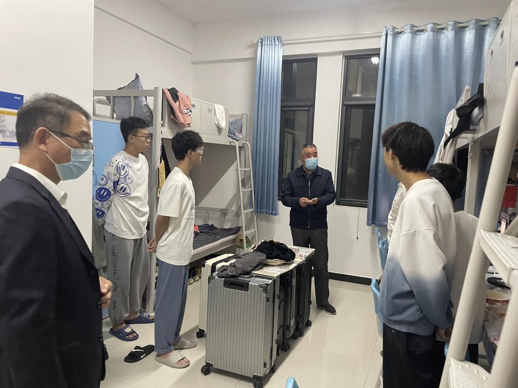 走访过程中,张志淮亲切询问了学生的线上学习情况、生活情况及遇到的困难,他叮嘱同学们要严格遵守学校疫情防控要求和宿舍管理规定,做好日常防护,注意气候变化,适时增减衣物,注意开窗通风,加强体育锻炼;他勉励同学们要杜绝思想松懈,端正学习态度,听从老师安排,保持乐观心态,共同营造良好的学习、生活环境,确保线上学习效果。