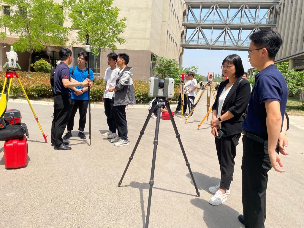 讲座结束后,工作人员携带徕卡前沿测绘仪器进行了现场展示。师生们纷纷围观,对仪器的操作流程、测量精度等方面提出问题。工作人员一一解答,让师生们对测绘技术有了更直观地认识和体验。