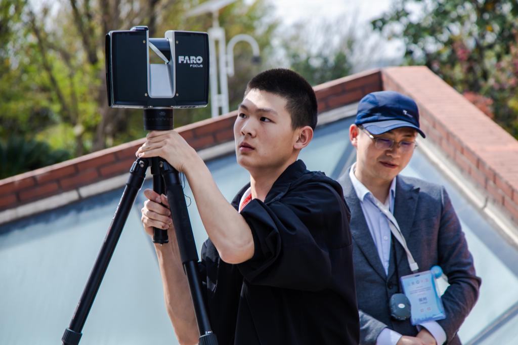 建筑施工测量赛项是大赛首次开设,聚焦技能发展与技术创新,旨在通过竞技交流,提升参赛选手的技能水平,推动建筑工程行业的进步。本次大赛共有全国70所高职院校的110支参赛队伍同台竞技,比赛项目包括理论考试、外业三维激光数据采集、内业数据处理与三维制图三个环节,全面考验参赛选手的综合能力。