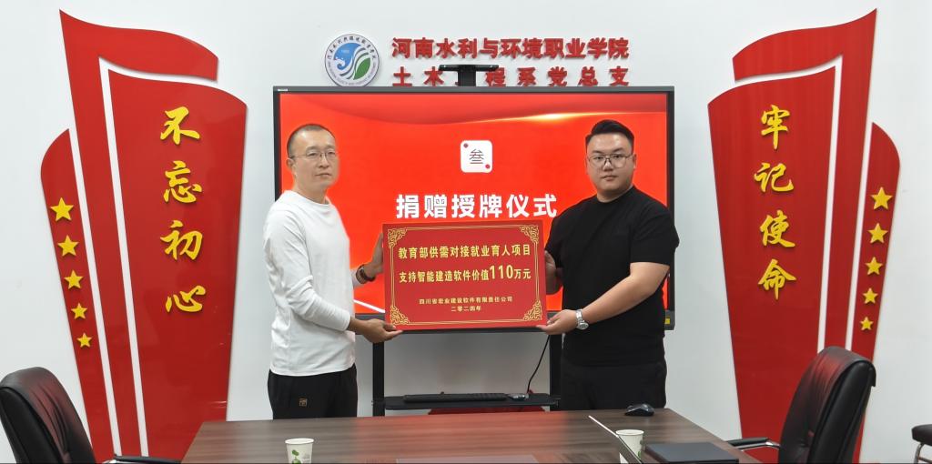 为促进专业人才培养与就业有机联动、人才供需有效对接,9月18日,教育部第三期供需对接就业育人项目授牌捐赠仪式在我校航空港校区举行。四川省宏业建设软件有限公司作为我校“装配式+智能建造就业实习实践基地”,向我校捐赠价值110万元的智能建造软件,用于教师的日常教学,学生的实习实训。土木工程系副主任张东岭,四川省宏业建设软件有限公司高校事业部副总经理张人之、河南分公司总经理赵海昆等参加仪式。