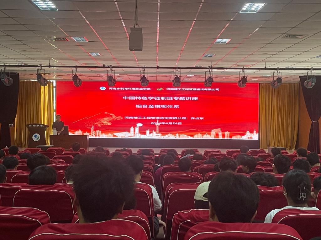 为进一步提升学生对现代施工技术的认识,4月26日,土木工程系邀请河南精工工程管理咨询有限公司工程师许占东到校做“铝合金模板体系”专题讲座,系中国特色学徒制班全体学生参加。