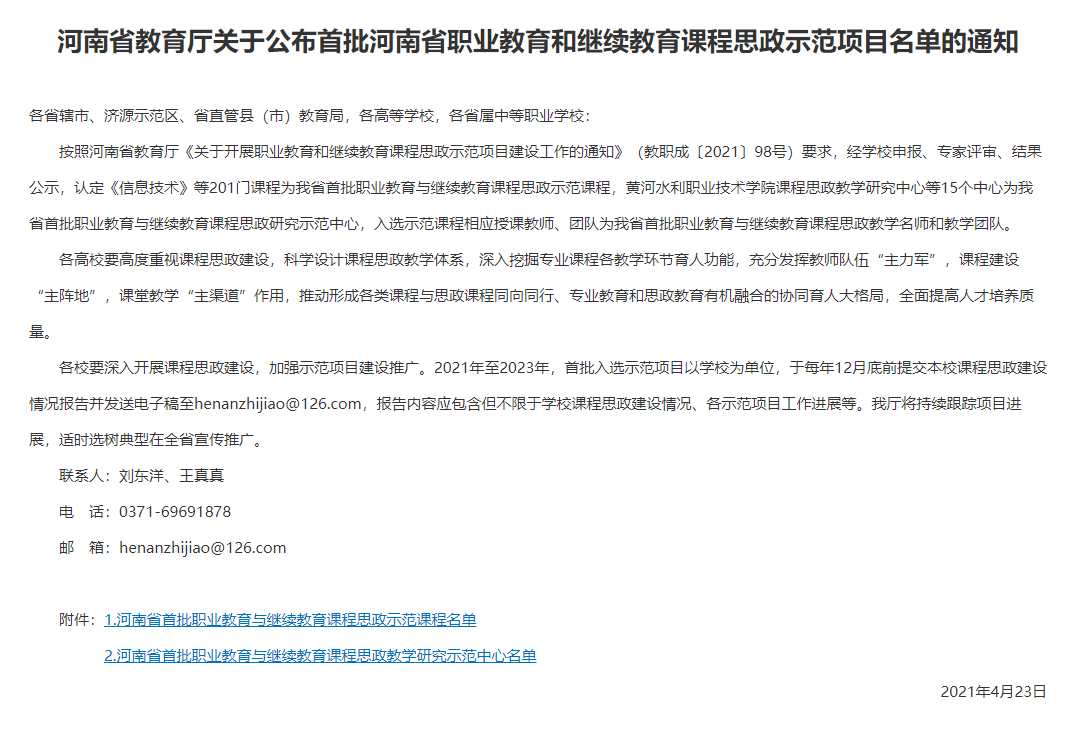 我系两门课程入选​河南省职业教育和继续教育课程思政示范项目