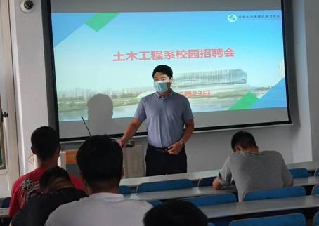 为促进我系学生实习就业,进一步搭建校企人才沟通合作平台,拓宽学生实习就业渠道,给学生就业提供全面有效的服务。2020年6月23日下午3点,我系在南教201、202、203、204、205教室为第二批返校学生举办了2021届毕业生推介暨顶岗位实习双选会。土木工程系书记文琳、系主任王玉振及相关负责人亲临现场,了解企业用人需求和用人标准,指导和鼓励学生勇于面对、积极沟通、以便找到合适的就业岗位。此次招聘会成功邀请到中城沪建工程咨询有限公司、河南水投建设集团有限公司、河南诚建检验检测技术股份有限公司、郑州麦普空间规划勘测设计有限公司、河南精工工程管理咨询有限公司、山东天元信息技术有限公司;郑州中核岩土工程有限公司、中鼎景宏工程管理有限公司、河南中徕测绘服务有限公司、河南铸铜工程管理有限公司等十余家企业单位前来招聘,本次双选会主要针对建筑工程技术专业、工程造价专业、工程测量技术专业学生,为本届学生提供了100多个顶岗实习岗位。
