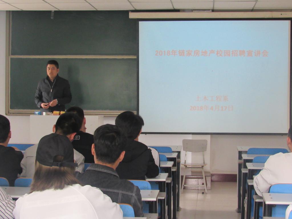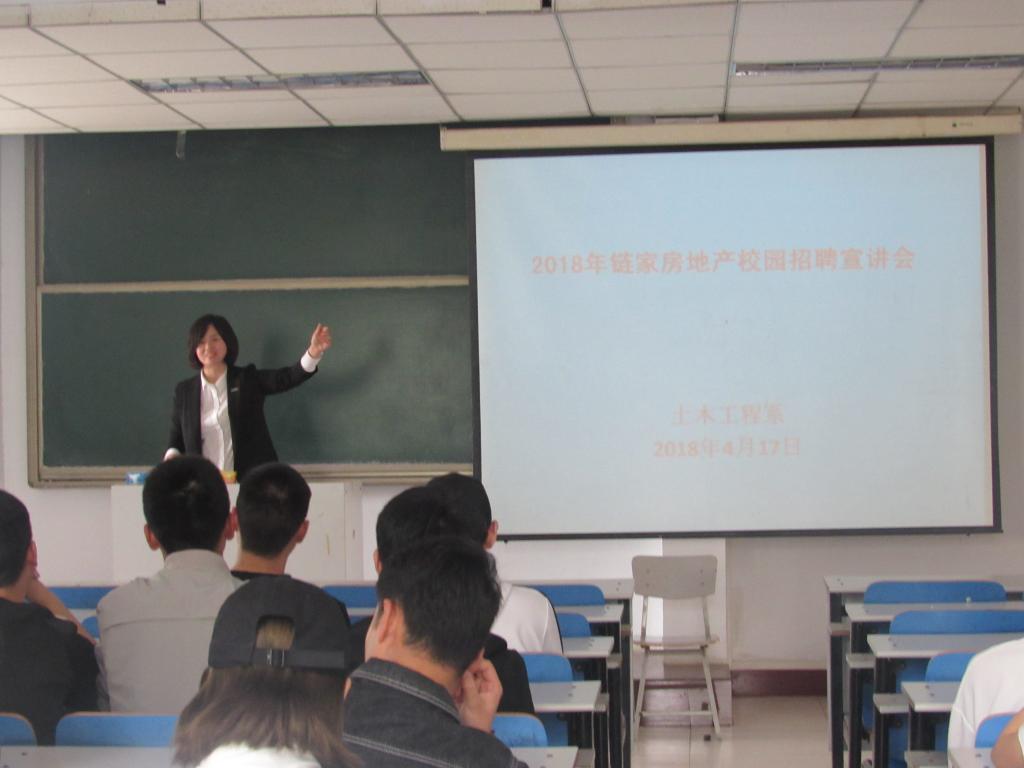 2018年4 月 17日下午,链家房地产公司于南教105、205、305教室为土木工程系应届生召开了校园招聘宣讲会。